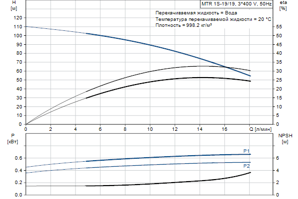 Головная часть и основание насоса из чугуна - все остальные контактирующие с перекачиваемой жидкостью детали из нержавеющей стали. Насос имеет следующие характеристики: