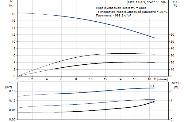 Головная часть и основание насоса из чугуна - все остальные контактирующие с перекачиваемой жидкостью детали из нержавеющей стали. Насос имеет следующие характеристики: