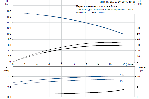 Головная часть и основание насоса из чугуна - все остальные контактирующие с перекачиваемой жидкостью детали из нержавеющей стали. Насос имеет следующие характеристики: