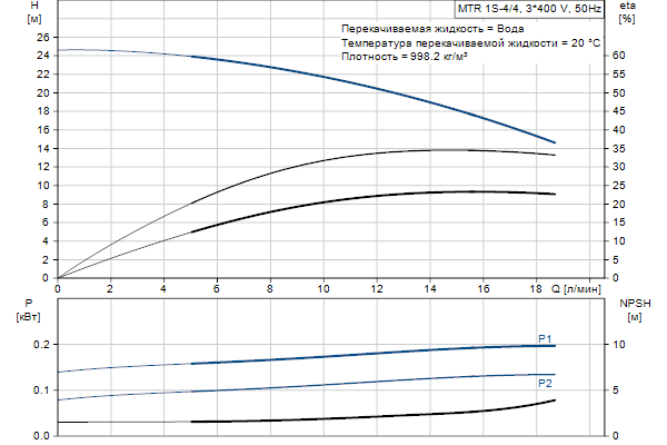 Головная часть и основание насоса из чугуна - все остальные контактирующие с перекачиваемой жидкостью детали из нержавеющей стали. Насос имеет следующие характеристики: