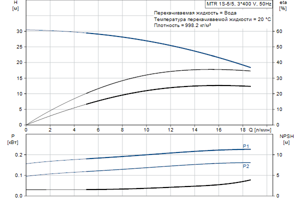 Головная часть и основание насоса из чугуна - все остальные контактирующие с перекачиваемой жидкостью детали из нержавеющей стали. Насос имеет следующие характеристики: