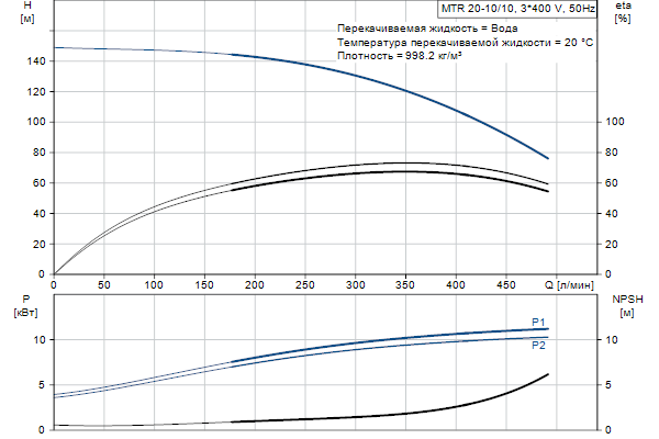 Головная часть и основание насоса из чугуна - все остальные контактирующие с перекачиваемой жидкостью детали из нержавеющей стали. Насос имеет следующие характеристики: