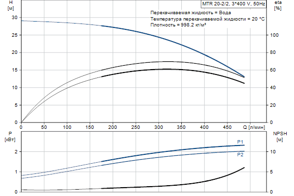 Головная часть и основание насоса из чугуна - все остальные контактирующие с перекачиваемой жидкостью детали из нержавеющей стали. Насос имеет следующие характеристики: