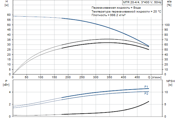 Головная часть и основание насоса из чугуна - все остальные контактирующие с перекачиваемой жидкостью детали из нержавеющей стали. Насос имеет следующие характеристики: