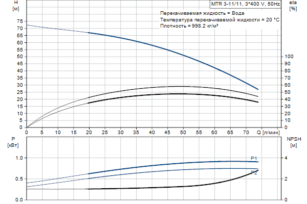 Головная часть и основание насоса из чугуна - все остальные контактирующие с перекачиваемой жидкостью детали из нержавеющей стали. Насос имеет следующие характеристики: