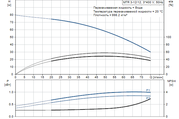 Головная часть и основание насоса из чугуна - все остальные контактирующие с перекачиваемой жидкостью детали из нержавеющей стали. Насос имеет следующие характеристики: