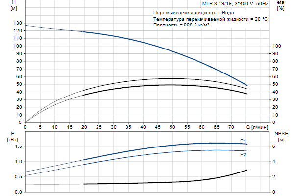 Головная часть и основание насоса из чугуна - все остальные контактирующие с перекачиваемой жидкостью детали из нержавеющей стали. Насос имеет следующие характеристики: