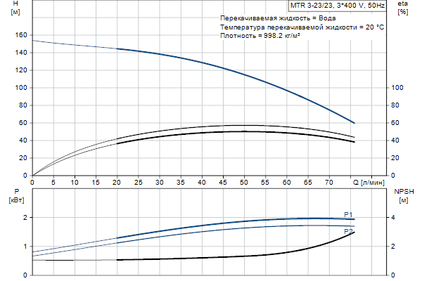 Головная часть и основание насоса из чугуна - все остальные контактирующие с перекачиваемой жидкостью детали из нержавеющей стали. Насос имеет следующие характеристики: