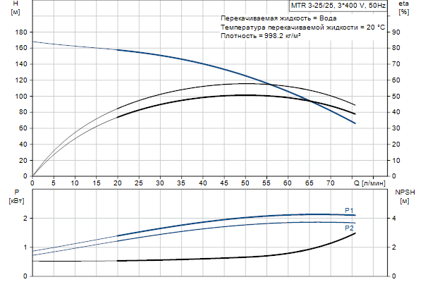 Головная часть и основание насоса из чугуна - все остальные контактирующие с перекачиваемой жидкостью детали из нержавеющей стали. Насос имеет следующие характеристики: