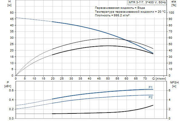 Головная часть и основание насоса из чугуна - все остальные контактирующие с перекачиваемой жидкостью детали из нержавеющей стали. Насос имеет следующие характеристики: