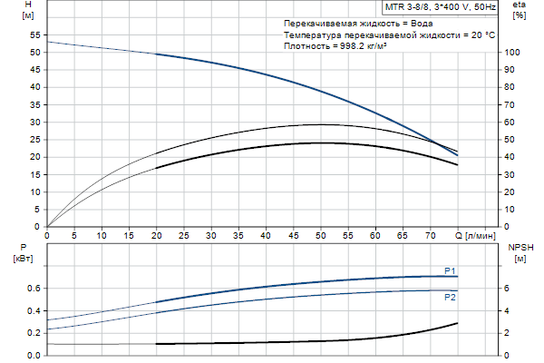 Головная часть и основание насоса из чугуна - все остальные контактирующие с перекачиваемой жидкостью детали из нержавеющей стали. Насос имеет следующие характеристики: