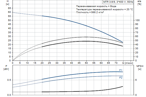 Головная часть и основание насоса из чугуна - все остальные контактирующие с перекачиваемой жидкостью детали из нержавеющей стали. Насос имеет следующие характеристики:
