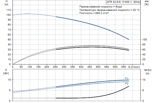 Головная часть и основание насоса из чугуна - все остальные контактирующие с перекачиваемой жидкостью детали из нержавеющей стали. Насос имеет следующие характеристики: