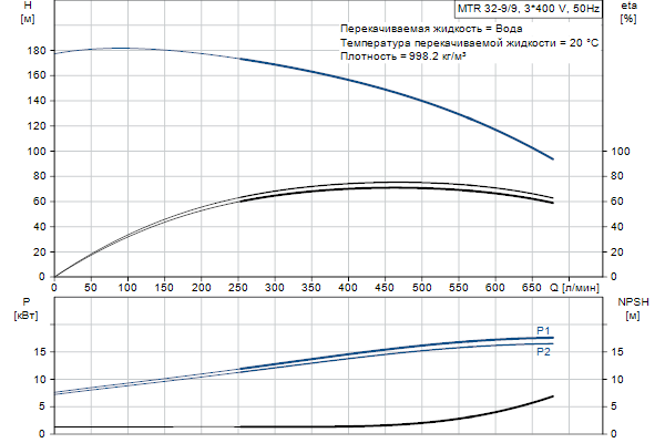 Головная часть и основание насоса из чугуна - все остальные контактирующие с перекачиваемой жидкостью детали из нержавеющей стали. Насос имеет следующие характеристики: