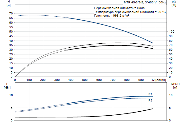 Головная часть и основание насоса из чугуна - все остальные контактирующие с перекачиваемой жидкостью детали из нержавеющей стали. Насос имеет следующие характеристики: