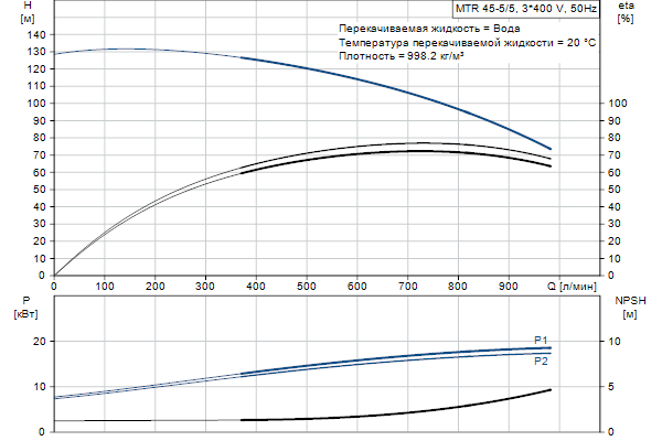 Головная часть и основание насоса из чугуна - все остальные контактирующие с перекачиваемой жидкостью детали из нержавеющей стали. Насос имеет следующие характеристики: