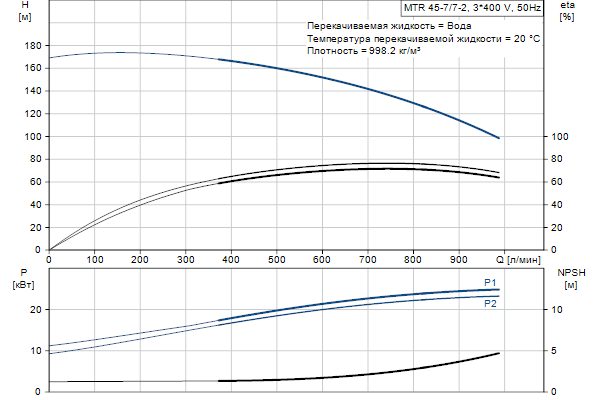 Головная часть и основание насоса из чугуна - все остальные контактирующие с перекачиваемой жидкостью детали из нержавеющей стали. Насос имеет следующие характеристики: