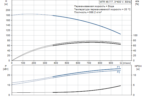 Головная часть и основание насоса из чугуна - все остальные контактирующие с перекачиваемой жидкостью детали из нержавеющей стали. Насос имеет следующие характеристики: