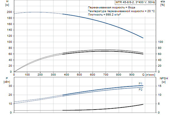 Головная часть и основание насоса из чугуна - все остальные контактирующие с перекачиваемой жидкостью детали из нержавеющей стали. Насос имеет следующие характеристики: