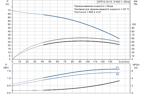 Головная часть и основание насоса из чугуна - все остальные контактирующие с перекачиваемой жидкостью детали из нержавеющей стали. Насос имеет следующие характеристики: