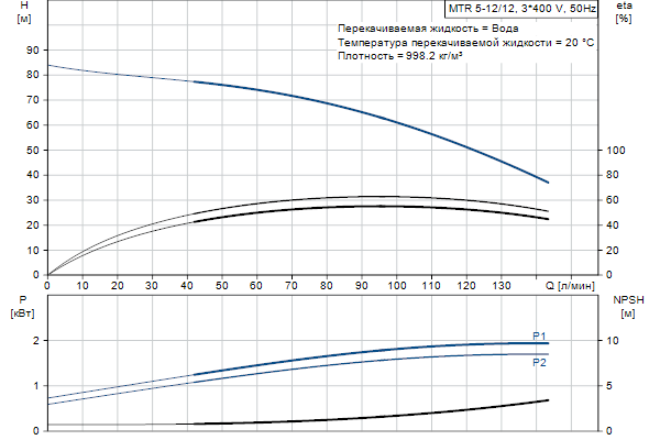 Головная часть и основание насоса из чугуна - все остальные контактирующие с перекачиваемой жидкостью детали из нержавеющей стали. Насос имеет следующие характеристики: