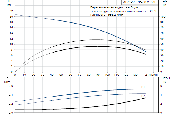 Головная часть и основание насоса из чугуна - все остальные контактирующие с перекачиваемой жидкостью детали из нержавеющей стали. Насос имеет следующие характеристики: