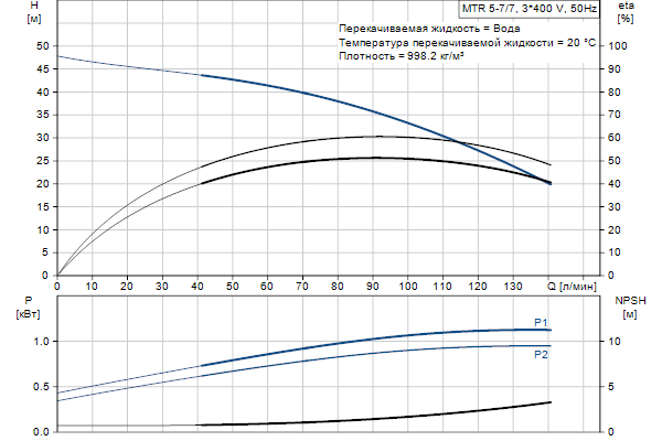 Головная часть и основание насоса из чугуна - все остальные контактирующие с перекачиваемой жидкостью детали из нержавеющей стали. Насос имеет следующие характеристики: