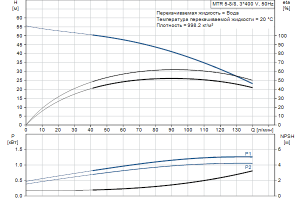 Головная часть и основание насоса из чугуна - все остальные контактирующие с перекачиваемой жидкостью детали из нержавеющей стали. Насос имеет следующие характеристики: