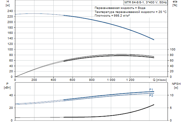 Головная часть и основание насоса из чугуна - все остальные контактирующие с перекачиваемой жидкостью детали из нержавеющей стали. Насос имеет следующие характеристики: