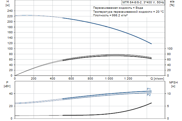 Головная часть и основание насоса из чугуна - все остальные контактирующие с перекачиваемой жидкостью детали из нержавеющей стали. Насос имеет следующие характеристики: