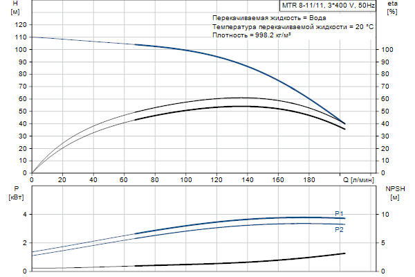 Головная часть и основание насоса из чугуна - все остальные контактирующие с перекачиваемой жидкостью детали из нержавеющей стали. Насос имеет следующие характеристики:
