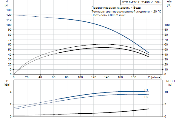 Головная часть и основание насоса из чугуна - все остальные контактирующие с перекачиваемой жидкостью детали из нержавеющей стали. Насос имеет следующие характеристики: