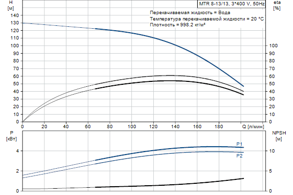 Головная часть и основание насоса из чугуна - все остальные контактирующие с перекачиваемой жидкостью детали из нержавеющей стали. Насос имеет следующие характеристики: