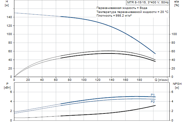 Головная часть и основание насоса из чугуна - все остальные контактирующие с перекачиваемой жидкостью детали из нержавеющей стали. Насос имеет следующие характеристики: