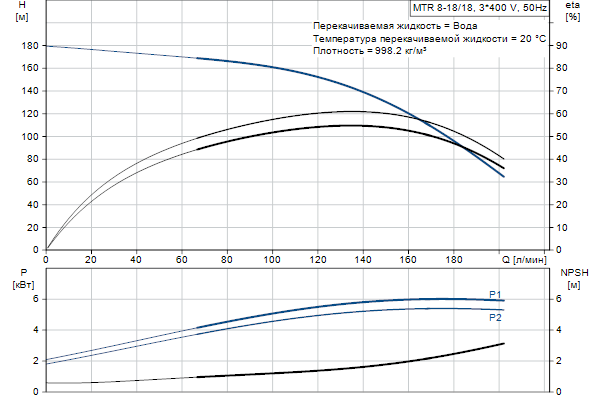 Головная часть и основание насоса из чугуна - все остальные контактирующие с перекачиваемой жидкостью детали из нержавеющей стали. Насос имеет следующие характеристики: