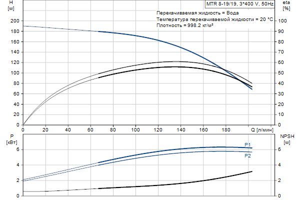 Головная часть и основание насоса из чугуна - все остальные контактирующие с перекачиваемой жидкостью детали из нержавеющей стали. Насос имеет следующие характеристики: