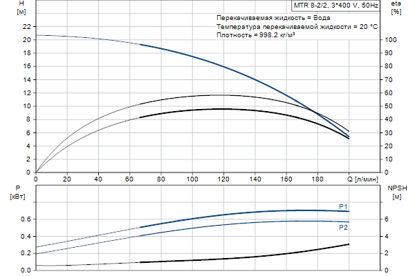 Головная часть и основание насоса из чугуна - все остальные контактирующие с перекачиваемой жидкостью детали из нержавеющей стали. Насос имеет следующие характеристики: