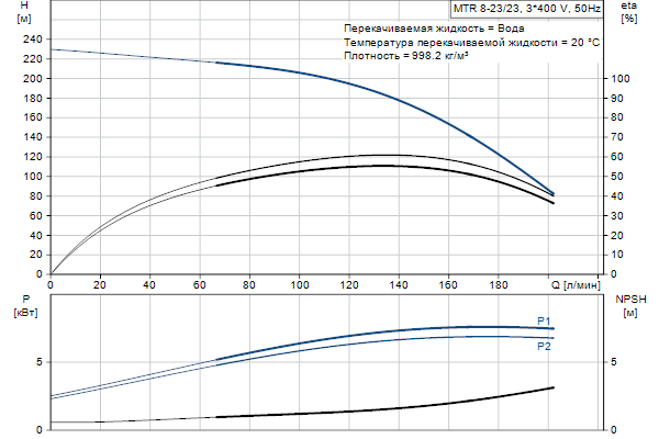 Головная часть и основание насоса из чугуна - все остальные контактирующие с перекачиваемой жидкостью детали из нержавеющей стали. Насос имеет следующие характеристики: