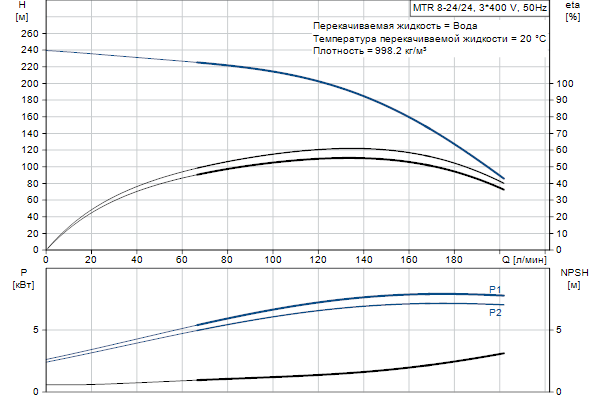 Головная часть и основание насоса из чугуна - все остальные контактирующие с перекачиваемой жидкостью детали из нержавеющей стали. Насос имеет следующие характеристики: