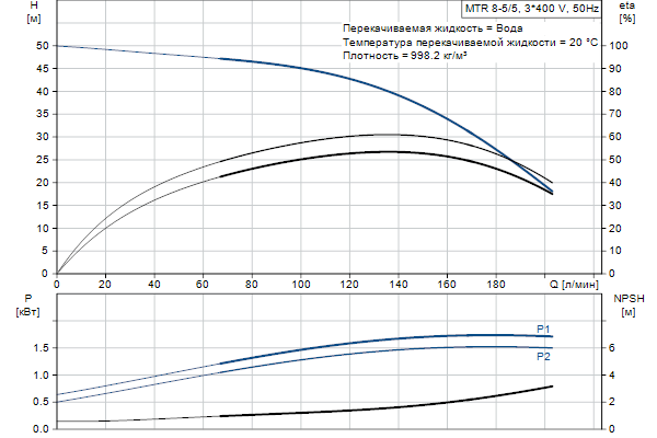 Головная часть и основание насоса из чугуна - все остальные контактирующие с перекачиваемой жидкостью детали из нержавеющей стали. Насос имеет следующие характеристики: