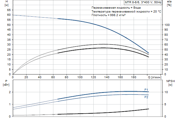 Головная часть и основание насоса из чугуна - все остальные контактирующие с перекачиваемой жидкостью детали из нержавеющей стали. Насос имеет следующие характеристики: