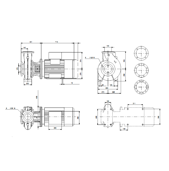 Несамовсасывающий, одноступенчатый, центробежный, насос со спиральной направляющей камерой разработан в соответствии с ISO 5199, при этом его размер и номинальная мощность соответствуют EN 733 (10 бар). Фланцы - PN 16 с размерами в соответствии с EN 1092-2. Насос имеет осевой всасывающий патрубок, радиальный напорный патрубок, горизонтальный вал и конструкцию со съёмной задней частью, обеспечивающей возможность демонтажа электродвигателя, фонаря, крышки и рабочего колеса без демонтажа корпуса насоса или трубопроводов.