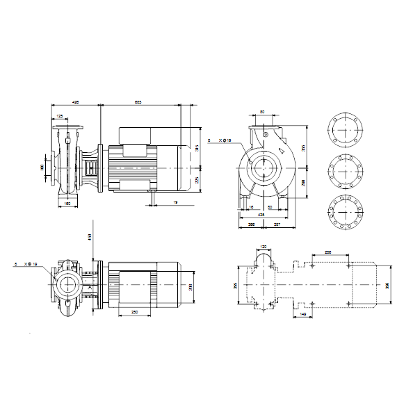 Несамовсасывающий, одноступенчатый, центробежный, насос со спиральной направляющей камерой разработан в соответствии с ISO 5199, при этом его размер и номинальная мощность соответствуют EN 733 (10 бар). Фланцы - PN 16 с размерами в соответствии с EN 1092-2. Насос имеет осевой всасывающий патрубок, радиальный напорный патрубок, горизонтальный вал и конструкцию со съёмной задней частью, обеспечивающей возможность демонтажа электродвигателя, фонаря, крышки и рабочего колеса без демонтажа корпуса насоса или трубопроводов.