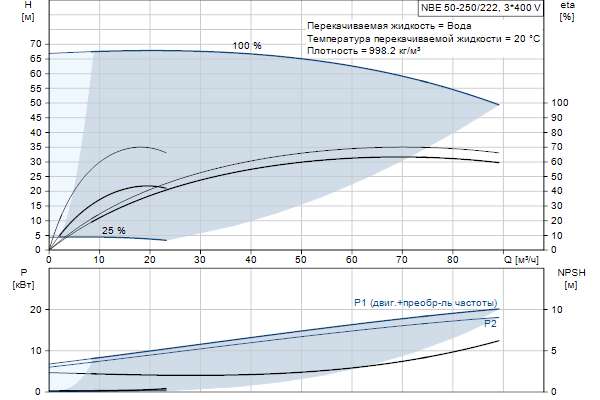 Насос напрямую соединён с асинхронным электродвигателем с воздушным охлаждением.
