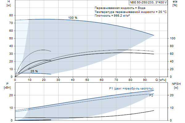 Насос напрямую соединён с асинхронным электродвигателем с воздушным охлаждением.