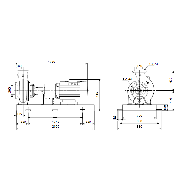 Несамовсасывающий, одноступенчатый, центробежный, насос со спиральной направляющей камерой разработан в соответствии с ISO 5199, при этом его размер и номинальная мощность соответствуют EN 733. Фланцы - PN 10 с размерами в соответствии с EN 1092-2. Насос оборудован осевым всасывающим, радиальным выходным патрубками и горизонтальным валом. Он имеет конструкцию с разборной муфтой, что обеспечивает демонтаж муфты, кронштейна подшипника и рабочего колеса, не демонтируя электродвигатель, корпус насоса или трубную обвязку.
