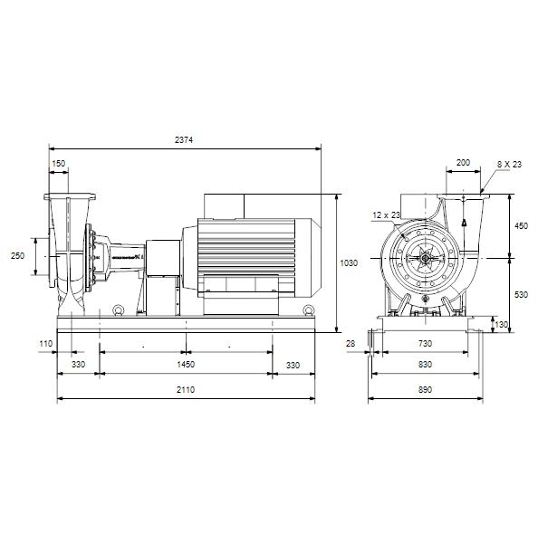 Несамовсасывающий, одноступенчатый, центробежный, насос со спиральной направляющей камерой разработан в соответствии с ISO 5199, при этом его размер и номинальная мощность соответствуют EN 733. Фланцы - PN 10 с размерами в соответствии с EN 1092-2. Насос оборудован осевым всасывающим, радиальным выходным патрубками и горизонтальным валом. Он имеет конструкцию с разборной муфтой, что обеспечивает демонтаж муфты, кронштейна подшипника и рабочего колеса, не демонтируя электродвигатель, корпус насоса или трубную обвязку.