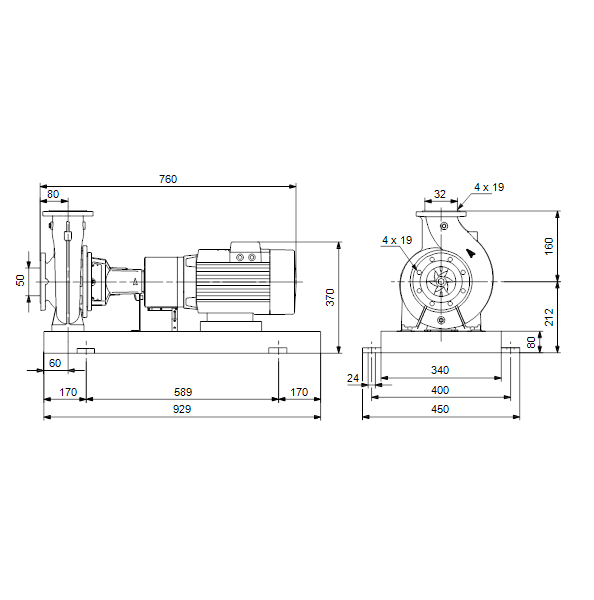 Несамовсасывающий, одноступенчатый, центробежный, насос со спиральной направляющей камерой разработан в соответствии с ISO 5199, при этом его размер и номинальная мощность соответствуют EN 733. Фланцы - PN 16 с размерами в соответствии с EN 1092-2. Насос оборудован осевым всасывающим, радиальным выходным патрубками и горизонтальным валом. Он имеет конструкцию с разборной муфтой, что обеспечивает демонтаж муфты, кронштейна подшипника и рабочего колеса, не демонтируя электродвигатель, корпус насоса или трубную обвязку.