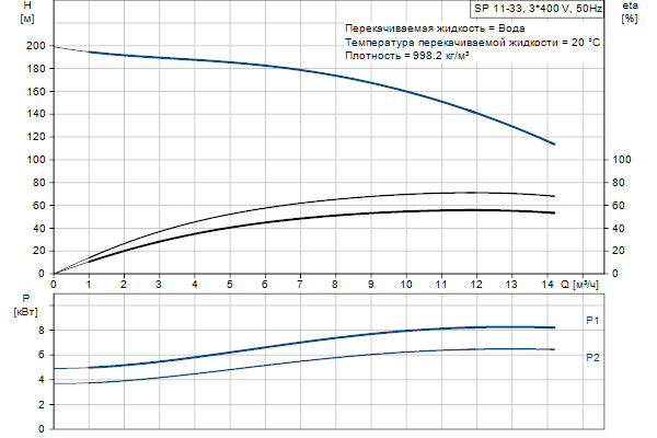 Насос оснащен электродвигателем MS40007.5 кВт с защитой от песка, торцевым уплотнением вала, опорными подшипниками с водяной смазкой и мембраной для компенсации объема. Электродвигатель представляет собой погружной двигатель в герметическом исполнении, обладающий хорошей механической стабильностью и высоким КПД. Подходит для температур до 40 °C.
