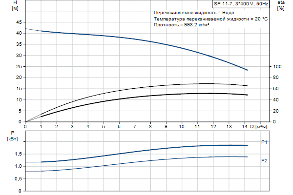Насос оснащен электродвигателем MS4021.5 кВт с защитой от песка, манжетным уплотнением, опорными подшипниками с водяной смазкой и мембраной для компенсации объема. Электродвигатель представляет собой погружной двигатель в герметическом исполнении, обладающий хорошей механической стабильностью и высоким КПД. Подходит для температур до 40 °C.